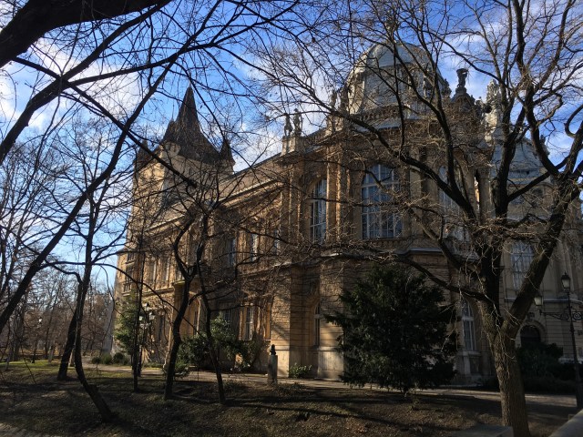 I had made some loose plans of things to do and had decided that on Christmas Day we would head on over to Széchenyi Spa for a relaxing afternoon. We walked to the Spa from our hotel through a pretty park with incredible architecture and an ice rink. The sun was shining and it was so lovely.
