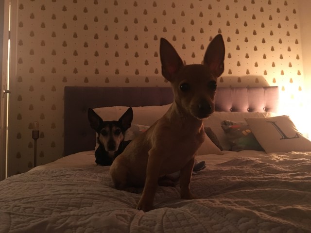 I saw an advert online for a female Jack Russell with brown fur. To cut a long story short, little Ivy was living in terrible conditions. Kept outside in freezing temperatures with her parents. She had fleas, worms and was covered in poop (lovely!). We took her to the vets, cleaned her up and welcomed her into our family. Holly was overjoyed at first but then spent a whole day of ignoring her and doing whatever she could to stay away from Ivy. After that day, Holly warmed to her and they began to form a nice bond. They groomed each other and snuggled up together. My heart swelled.