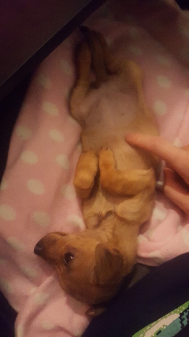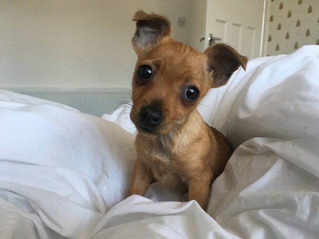 In terms of personality, Ivy is very sweet. She’s loving, playful and just adorable. I love playing hide and seek with her. Her whole body wags with excitement and it’s just the cutest thing. In a non-creepy way, I love watching her sleep. She stretches her little neck out and looks so peaceful. Sometimes she still suckles in her sleep. It’s adorable and something that Holly never did. We are very lucky because she hasn’t really destroyed anything round the house although she is rather partial to a bit of light sock theft. When Ivy gets too tired she has a ‘grumpy face’. Lines form on her tiny forehead along with little bags under her eyes.